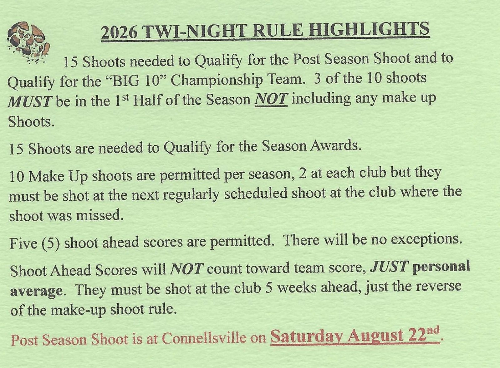 Tri-night league fist shoot will be at Connellsville on April 2, 2026.